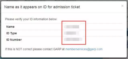 【注意:身份信息必须一次性填写正确,如填写有误需要您及时发送邮件并上传护照或驾驶证扫描件至MemberServices garp.com邮箱修改】